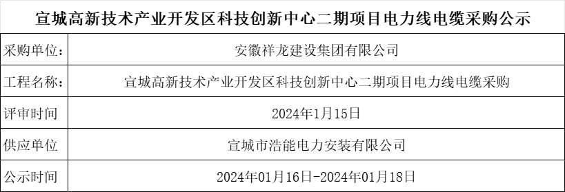 宣城高新技術產業開發區科技創新中心二期項目電線電纜采購公示
